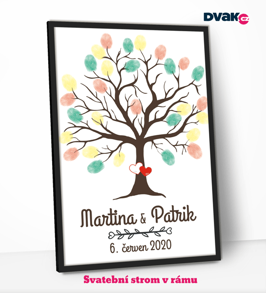 Svatební strom hostů je originální a jedinečnou vzpomínkou na Váš svatební den. Strom má pouze větvičky bez lístků. Každý ze svatebčanů otiskne svůj prst jako lístek na stromě. Spolu s obtiskem se může každý podepsat nebo přidat vzkaz.