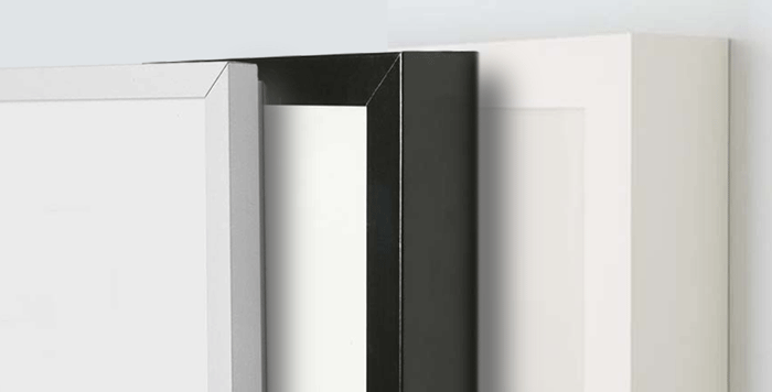 Svatební stromy v rámu: vybraný motiv vytiskneme na kvalitní křídový papír o gramáži 220 g potom je nakašírován na desku a zasazen do rámu. Na výběr jsou dva barevné odstíny dřevěných rámů v černé a bílé barvě, nebo rám z hliníku.